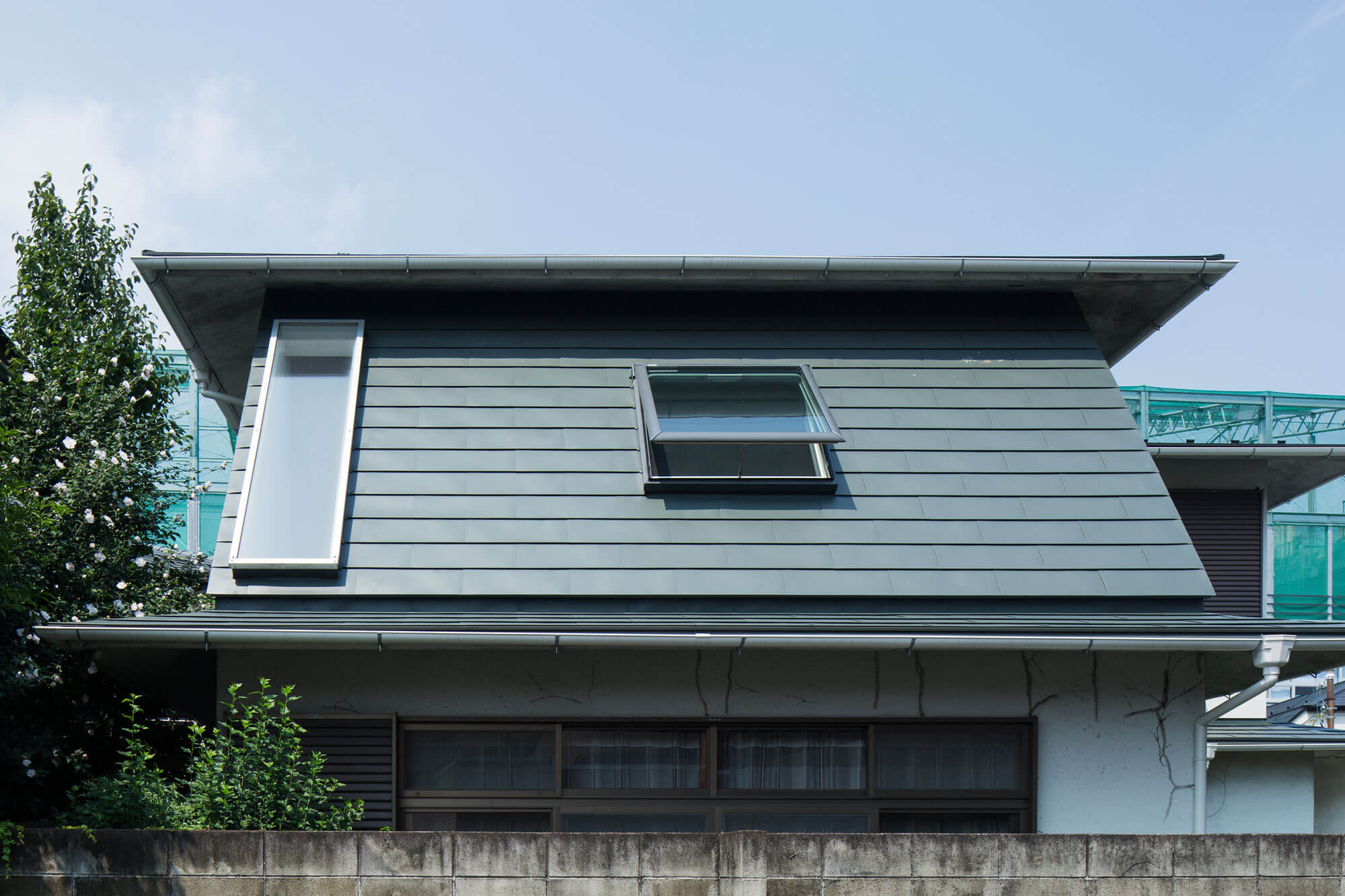 そこで建物全体を2層のボリュームととらえ、既存の軸組を活かしつつ耐震補強を兼ねた全体の再構成を試みた。